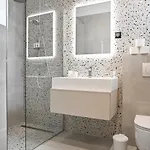 Tot de badkamerfaciliteiten behoren ook een bidet, een inloopdouche en een wastafel. Een haardroger, kamerjassen en handdoeken zijn inbegrepen voor extra comfort.